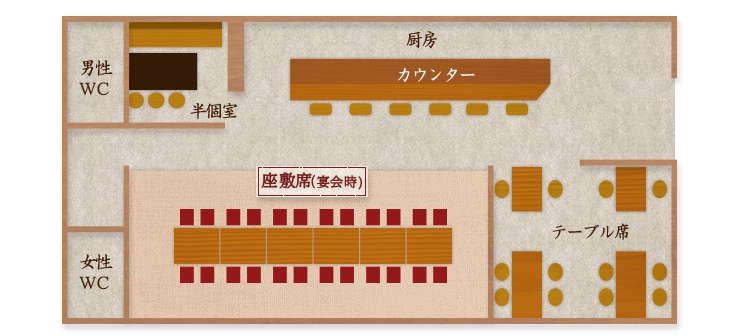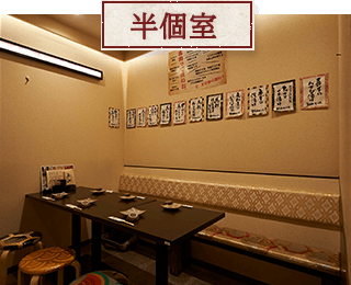 - 「今日は腰を据えて飲むぞ!」という夜は、半個室のご利用もおすすめです。周りを気にせず、会話に花を咲かせてください。 普段のお食事はもちろん、少人数のちょっとした飲み会にもぜひどうぞ。