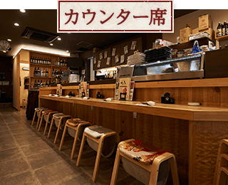 - お一人様やちょい飲みに喜ばれるカウンター席もあります。お仕事帰りや成田空港へ向かう途中などに、ふらっとお立ち寄りください。カウンターを挟んだ目の前で、手際よく料理をご用意します。