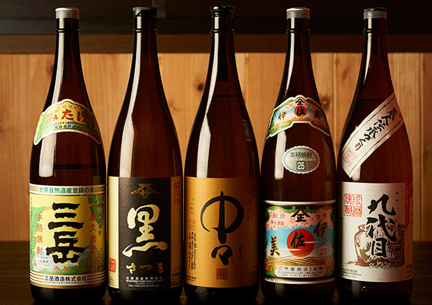 芋・麦はもちろん、米や紫蘇、泡盛も豊富にラインナップ。